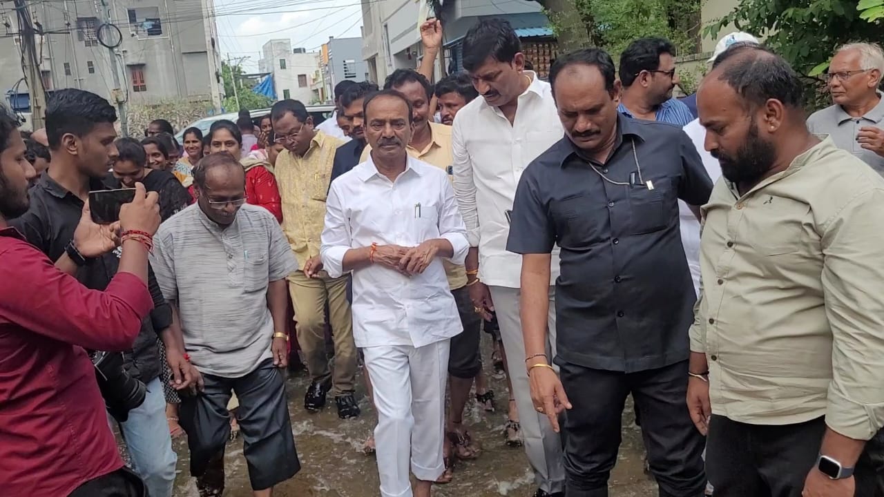 బి.యన్ రెడ్డి నగర్, మహానది న్యూస్: డివిజన్లోని ముంపు కాలనీలకు శాశ్వత పరిష్కారం చేయాలని మల్కాజ్గిరి పార్లమెంట్ సభ్యులు ఈటల రాజేందర్ దృష్టికి బి.యన్ రెడ్డి నగర్ డివిజన్ జిహెచ్ఎంసి కార్పొరేటర్ మొద్దు లచ్చి రెడ్డి తీసుకురావడంతో ఈ రోజు బి.యన్.రెడ్డి నగర్ డివిజన్ పరిధిలోని ముంపు కాలనీలలో పర్యటించడం జరిగింది. కురిసిన భారీ వర్షాలతో వినూత్న కాలనీ, గాంధీ నగర్ సౌత్, అఖిలాండేశ్వరి కాలనీ, స్నేహమయి నగర్ కాలనీ, పివిఆర్ కాలనీ తదితర పరిసర కాలనీలో ముంపుకు గురైన నేపథ్యంలో మల్కాజ్గిరి పార్లమెంట్ సభ్యులు ఈటల రాజేందర్ రంగారెడ్డి అర్బన్ జిల్లా అధ్యక్షులు వనపల్లి శ్రీనివాస్ రెడ్డి సమస్యను వివరించి ముంపు సమస్య ప్రాంతాన్ని తిప్పి చూపించారు.ఈ సందర్భంగా కార్పొరేటర్ మాట్లాడుతూ అడవి ప్రాంతం నుంచి భారీ వరద రావడంతో అడ్డుగా ఉన్న కట్ట తెగి వినూత్న కాలనీకుండా వరద నీరు ప్రవేశించింది అన్నారు. తద్వారా వినూత్న నగర్ గాంధీనగర్ సౌత్ అఖిలాండేశ్వరి కాలనీ స్నేహమే నగర్ పివిఆర్ కాలనీ పద్మావతి కాలనీలు నీట మునిగేయన్నారు. దీనికి శాశ్వత పరిష్కారం కోసం భారీ స్ట్రామ్ వాటర్ డ్రైన్ నిర్మాణం చెయ్యడం ద్వారా వరదను అరికట్టవచ్చని తెలిపారు. ఈ సందర్భంగా ఈటల రాజేందర్ ముంపుకు గురైన కాలనీలలో పర్యటించి కాలనీ వాసులతో సమస్యను అడిగి తెలుసుకోవడం జరిగింది త్వరలోనే సమస్య పరిష్కారమయ్యే విధంగా సంబంధించిన అధికారులతో మాట్లాడి వీలైనంత త్వరగా సమస్య శాశ్వత పరిష్కారమయ్యే విధంగా చర్యలు తీసుకుంటామని హామీ ఇవ్వడం జరిగింది.