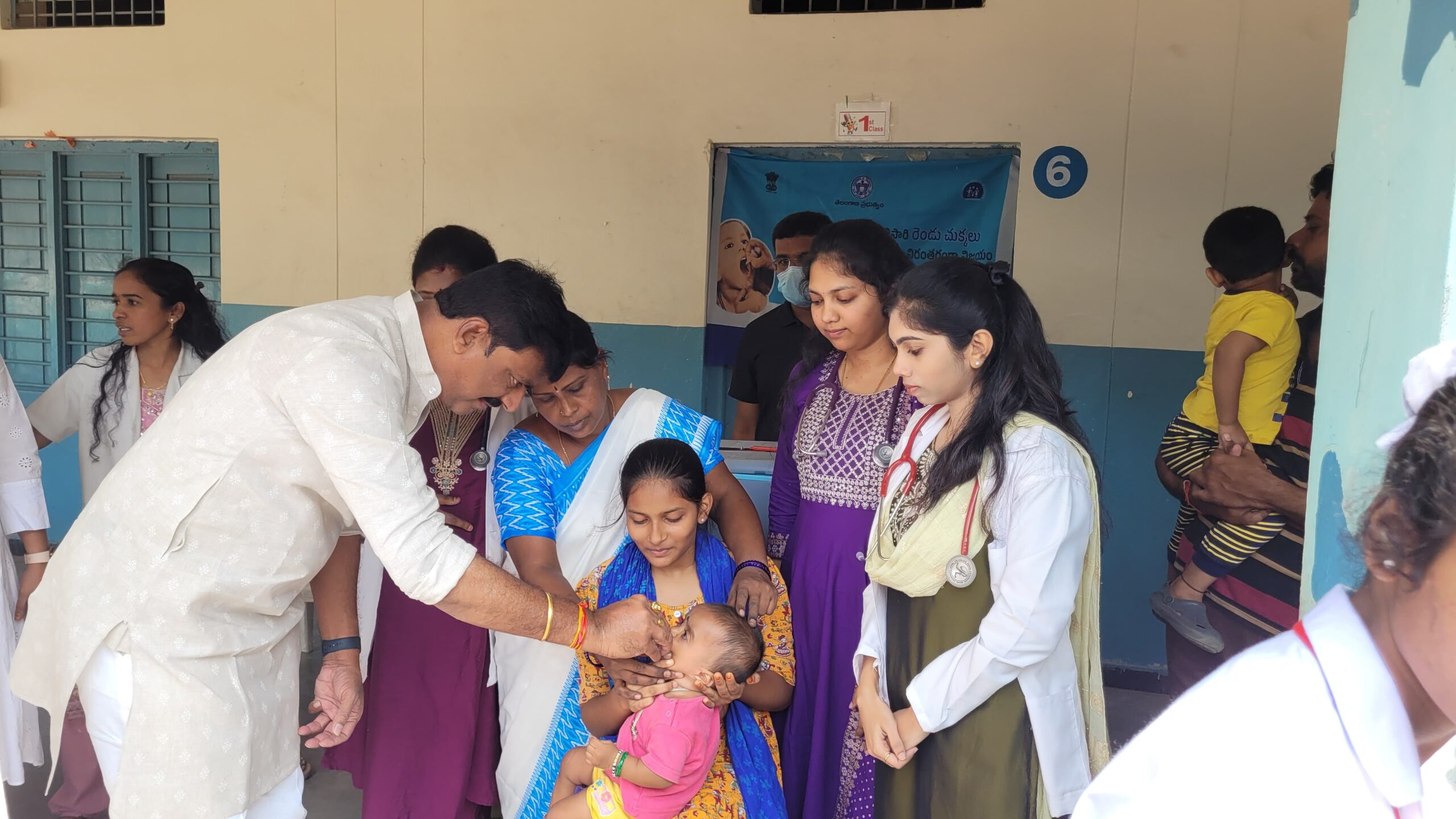 చిన్నారికి పోలియో చుక్కలు వేస్తున్న కార్పొరేటర్ మొద్దు లచ్చి రెడ్డి