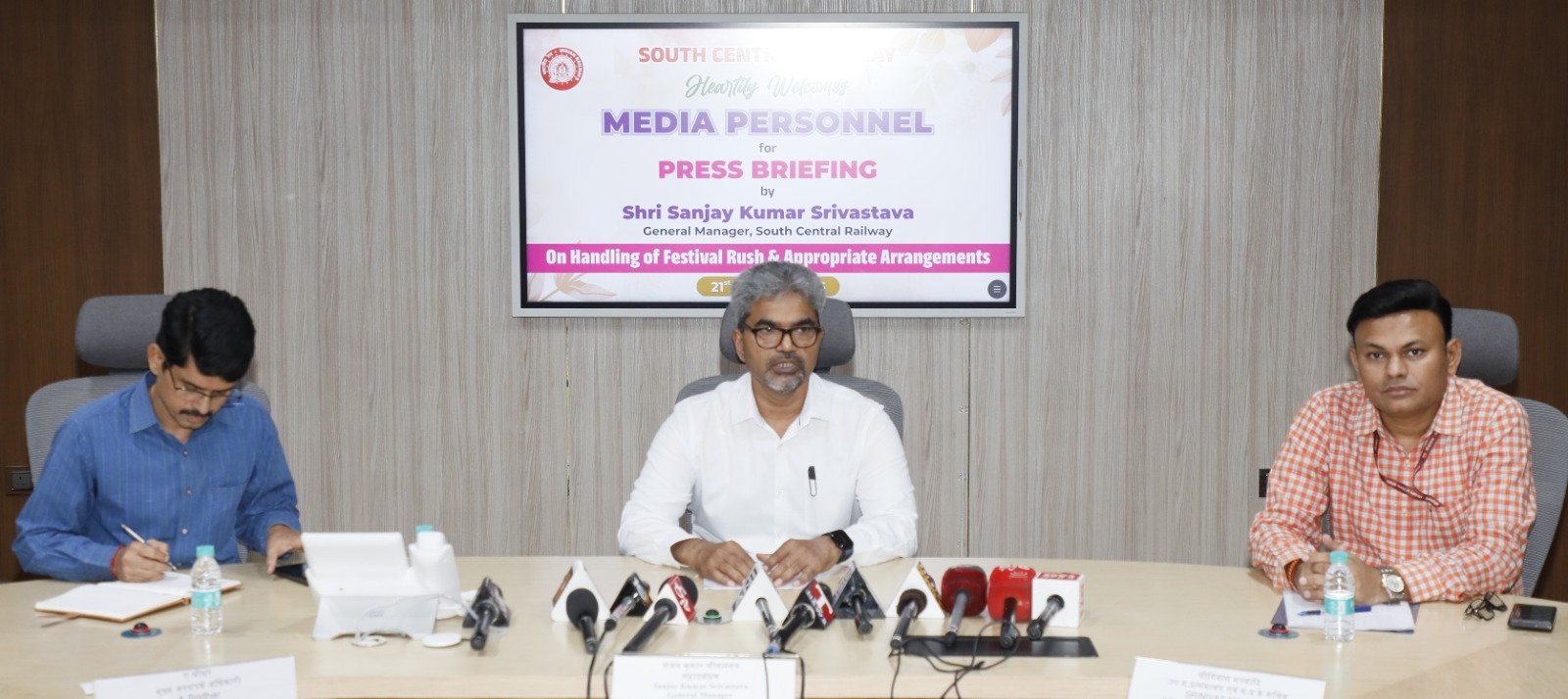 మీడియా సమావేశంలో మాట్లాడుతున్న దక్షిణ మధ్య రైల్వే జనరల్ మేనేజర్ సంజయ్ కుమార్ శ్రీవాస్తవ