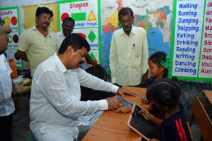 పాఠశాలలో విద్యార్థులతో ప్రత్యక్షంగా మాట్లాడి వారి నైపుణ్యాన్ని పరీక్షించారు. సాధారణ ప్రశ్నలతో పాటు పాఠ్యాంశాలకు సంబంధించిన ప్రశ్నలు అడిగి సమాధానాలు రాబట్టారు. విద్యార్థులు చక్కగా చదువుతున్నారని ప్రశంసిస్తూ, మరింత అభివృద్ధి సాధించేలా ఉపాధ్యాయులు కృషి చేయాలని సూచించారు.