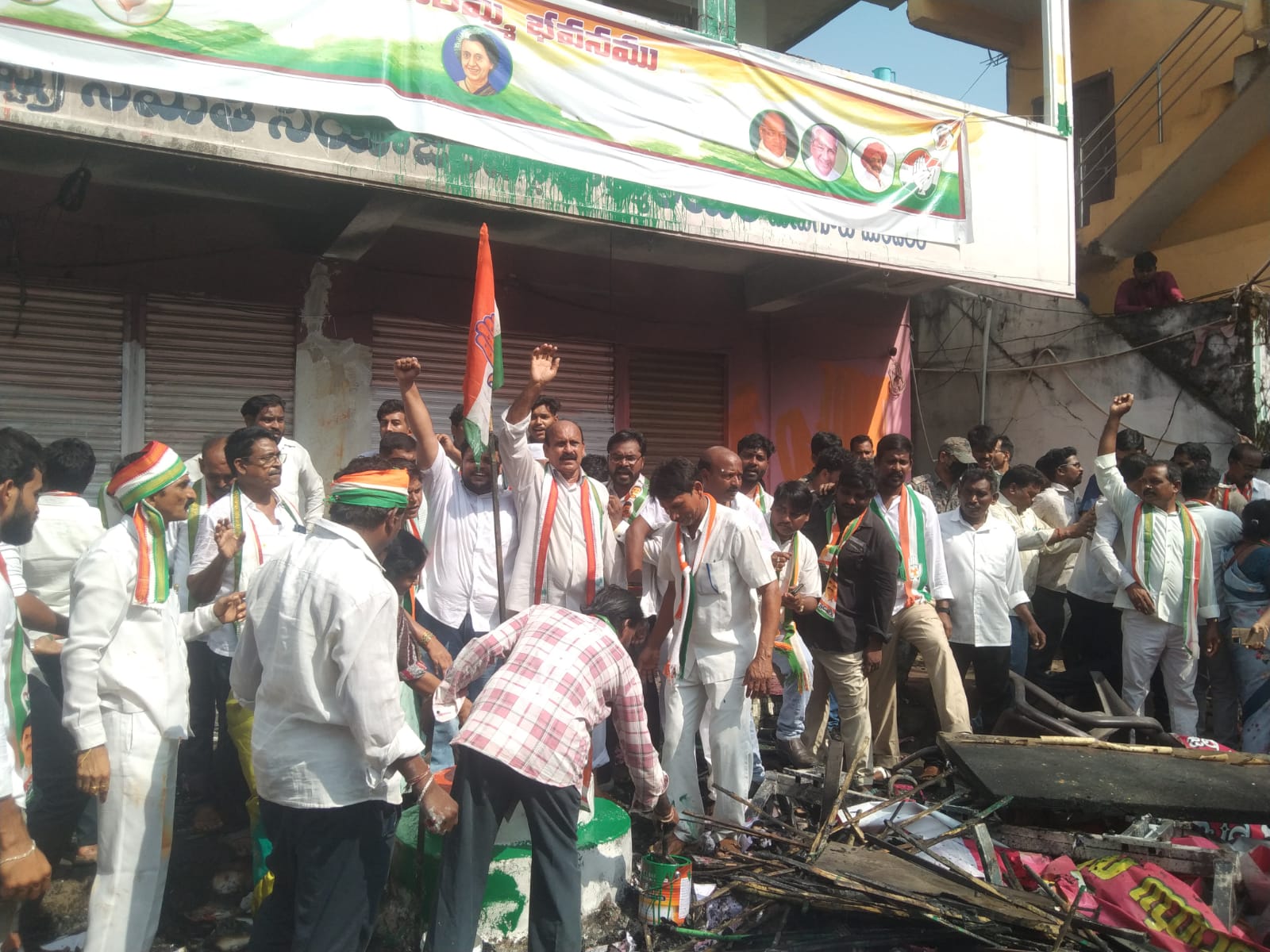 బిఆర్ఎస్ శ్రేణులను కార్యాలయం నుండి బయటకు పంపించబడగా, పార్టీ జెండాలను కిందికి దించి, కాంగ్రెస్ జెండాలను ఎగురవేశారు. అనంతరం నినాదాలు చేస్తూ కాంగ్రెస్ కార్యకర్తలు సంబరాలు జరిపారు.